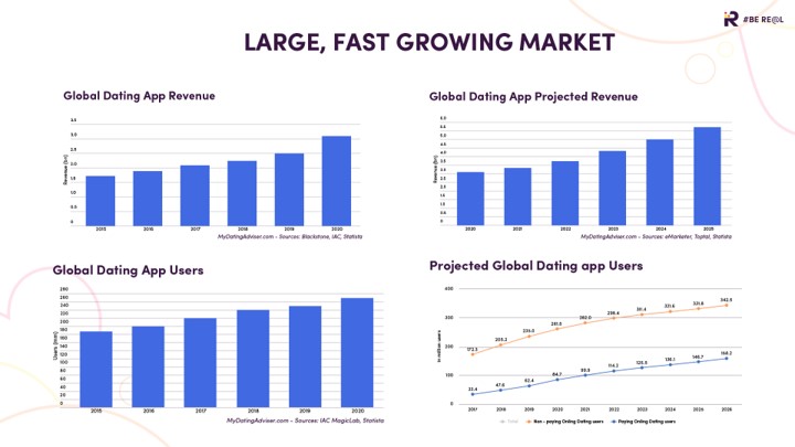 Real Dating app’s mission is to build an online community through which relationships can be developed and nurtured through trust. The idea is to enable the development of more meaningful relationships by bringing the online dating experience closer to a “real life” experience by taking out fake profiles and cat-fishing out of the dating game.